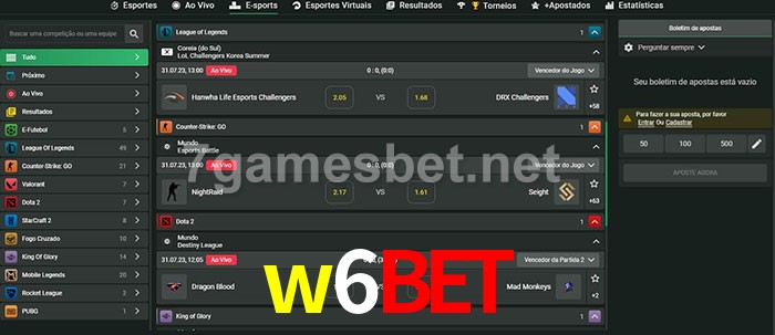 O w6bet oferece uma grande seleção de opções de apostas em e-sports com probabilidades competitivas